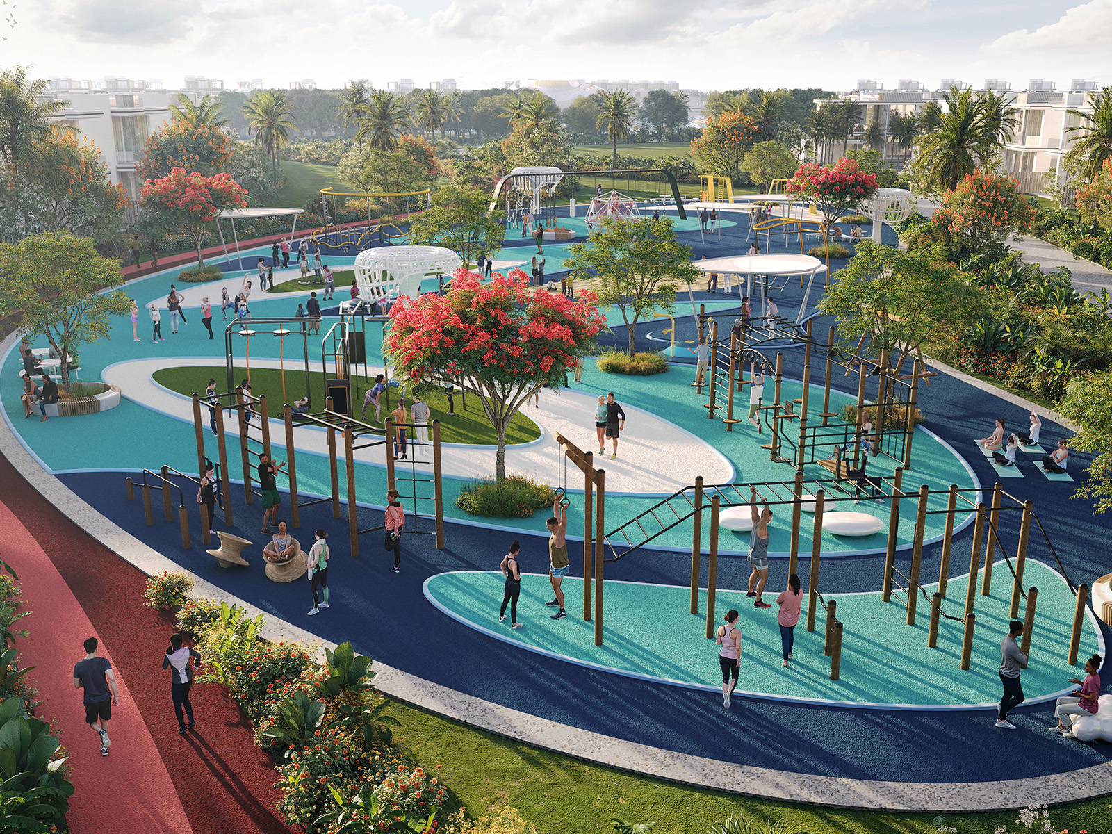 - Sức khỏe (Health): Zen Spa, hồ tinh dầu (Essential Oil Lakes), calisthenics stations, đường chạy – đạp xe và câu lạc bộ trung tâm.