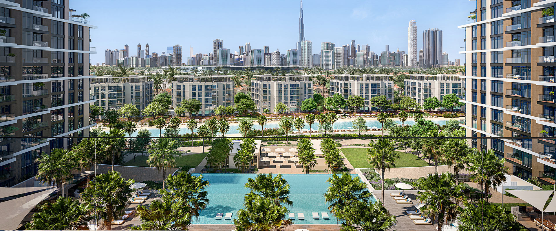 - Bay Grove Residences, Dubai Islands – Giai đoạn cuối của quần thể ven biển: căn hộ 1–4 phòng ngủ và signature penthouse, cửa kính full-height đón trọn cảnh biển – đô thị, Crystal Beach ngay ngưỡng cửa, vườn podium, bể bơi vô cực, clubhouse sôi động.